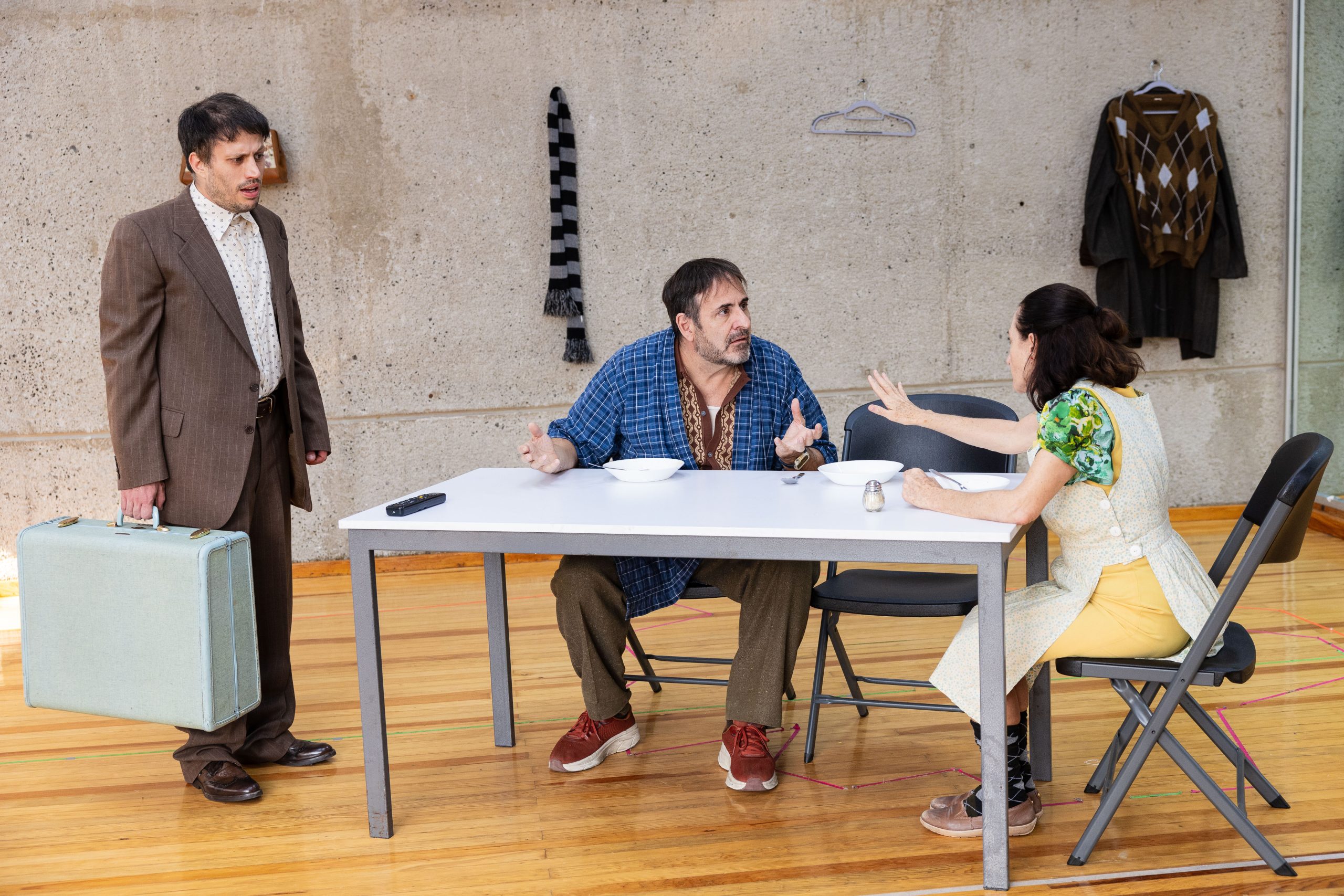 La escenografía de Anna Adrià Reventós y el paisaje sonoro de Alejandro Pressier funcionan como un leitmotiv que, a lo largo del montaje, se descompone progresivamente. Este deterioro sensorial traduce en escena la asfixia cotidiana de una familia atrapada en sus propios rituales y jerarquías, hasta que la irrupción inesperada de otra familia comienza a resquebrajar esa normalidad sofocante. La luz, los objetos, los sonidos y los silencios se transforman dejando al descubierto el vacío y la violencia latente en lo doméstico.