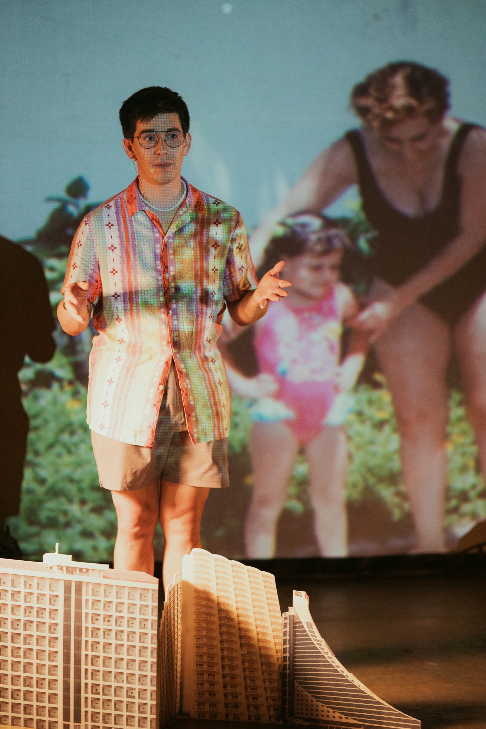 La obra funciona como una máquina escénica que intenta hacer aparecer un paraíso imaginado: un territorio construido con fragmentos de memorias, archivos y deseos, pero también con los restos que deja la turistificación. Sobre el escenario conviven objetos recogidos en la costa, documentos de un proyecto comunitario concebido en los años 2000, souvenirs que hemos acumulado como turistas y relatos sobre la colonización del edén. Esta obra nos permite preguntarnos si, frente a la realidad de la industria del turismo, puede existir una forma de viajar que sea más justa con los territorios y más digna para las personas a las que queremos conocer.